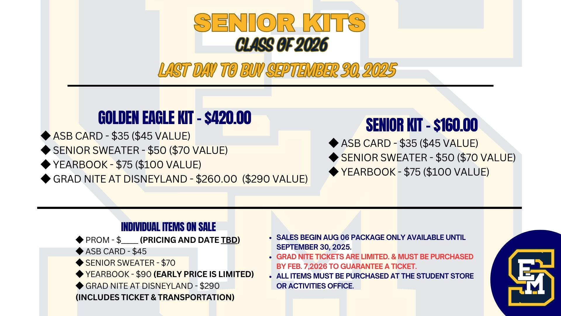 Hello SEM Eagles & Families! Student kits for the 2025 - 2026 school year are still available!